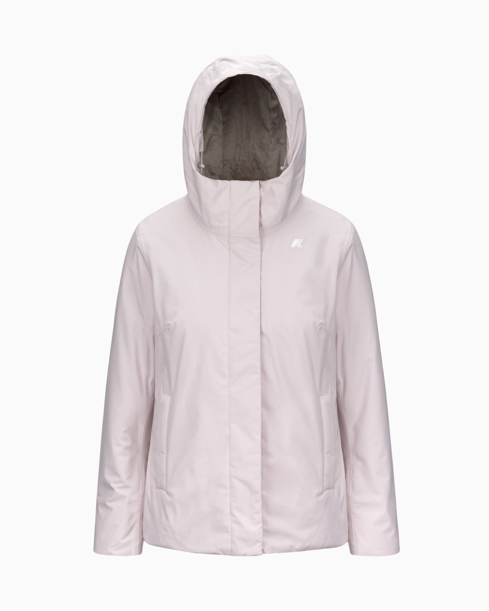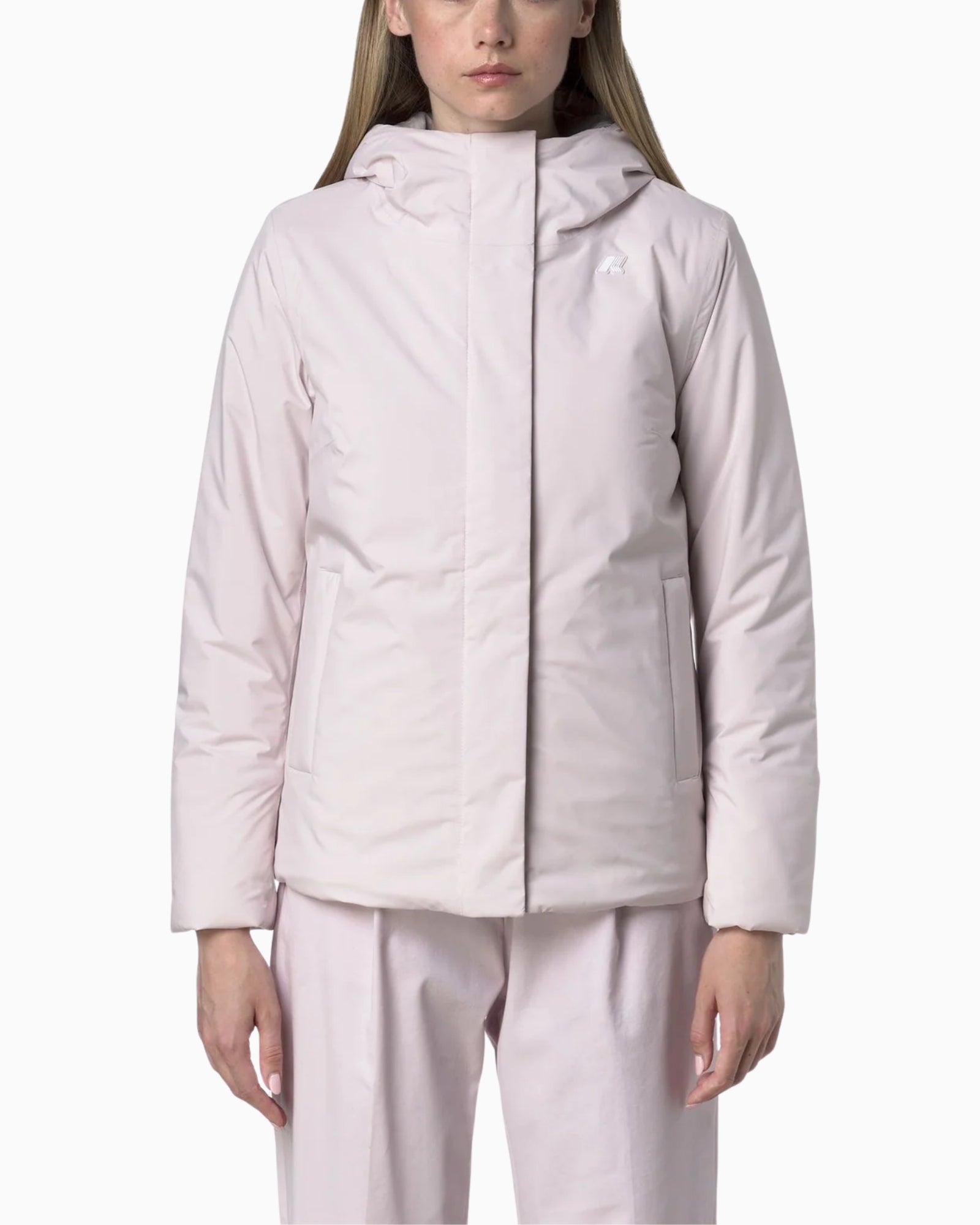 Giacca corta isolante da donna grigia con cappuccio regolabile