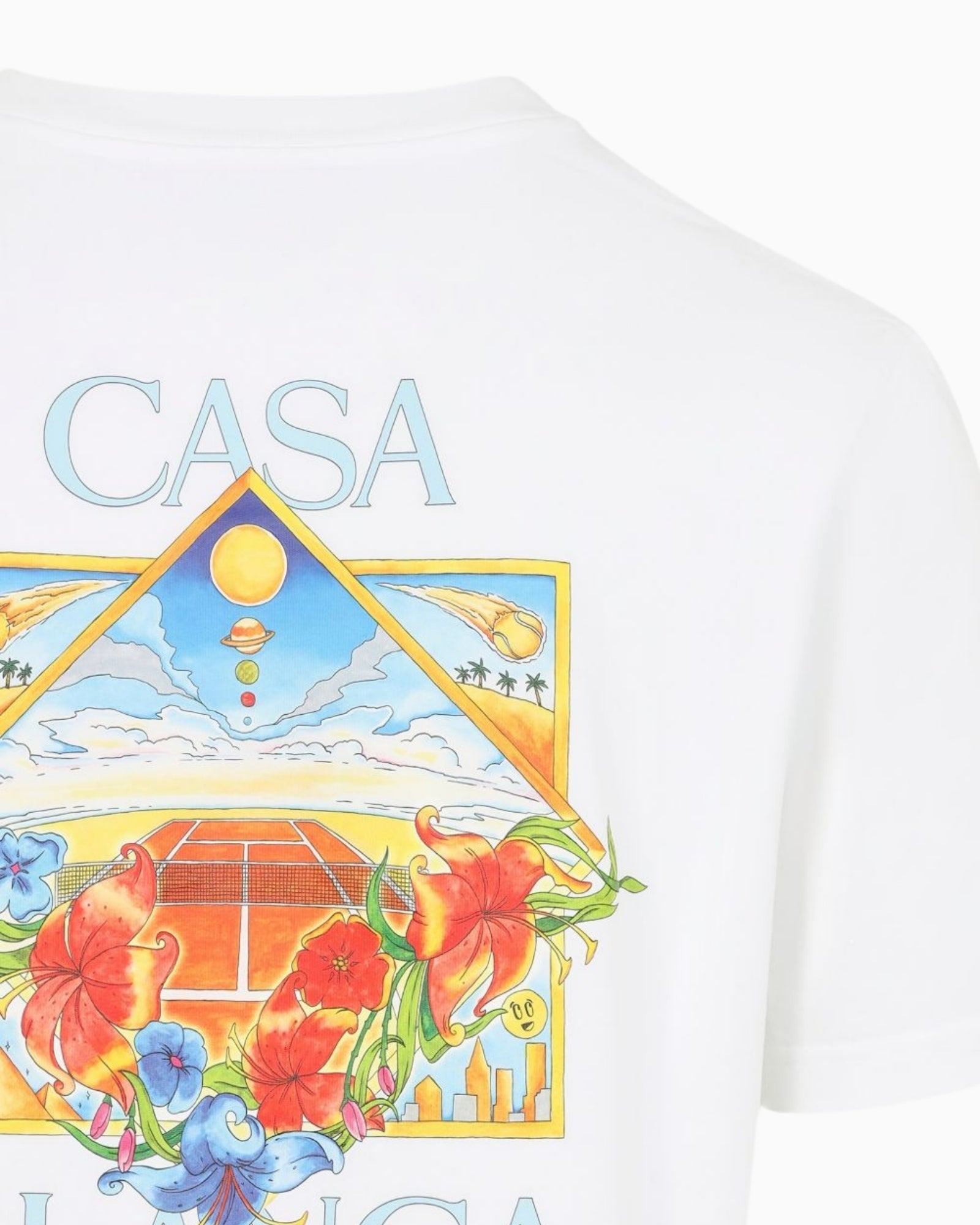 T-shirt uomo Casablanca "Flower court icon" realizzata in cotone biologico color bianco,
