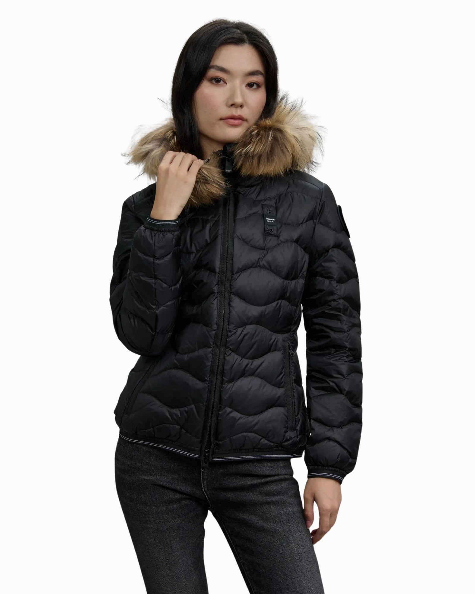 Capo iconico Blauer con imbottitura naturale, calda e non ingombrante, per essere sempre alla moda.