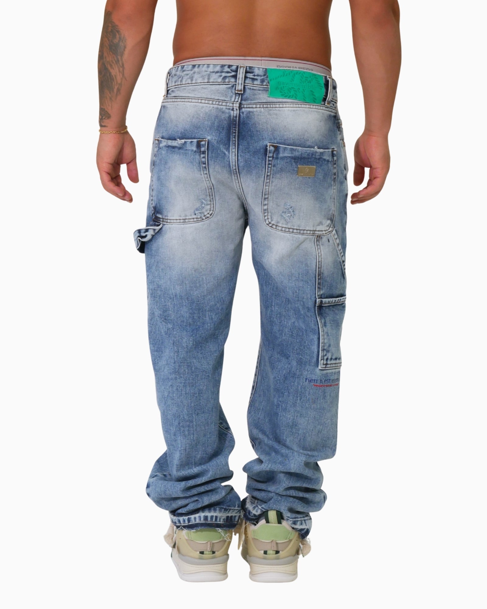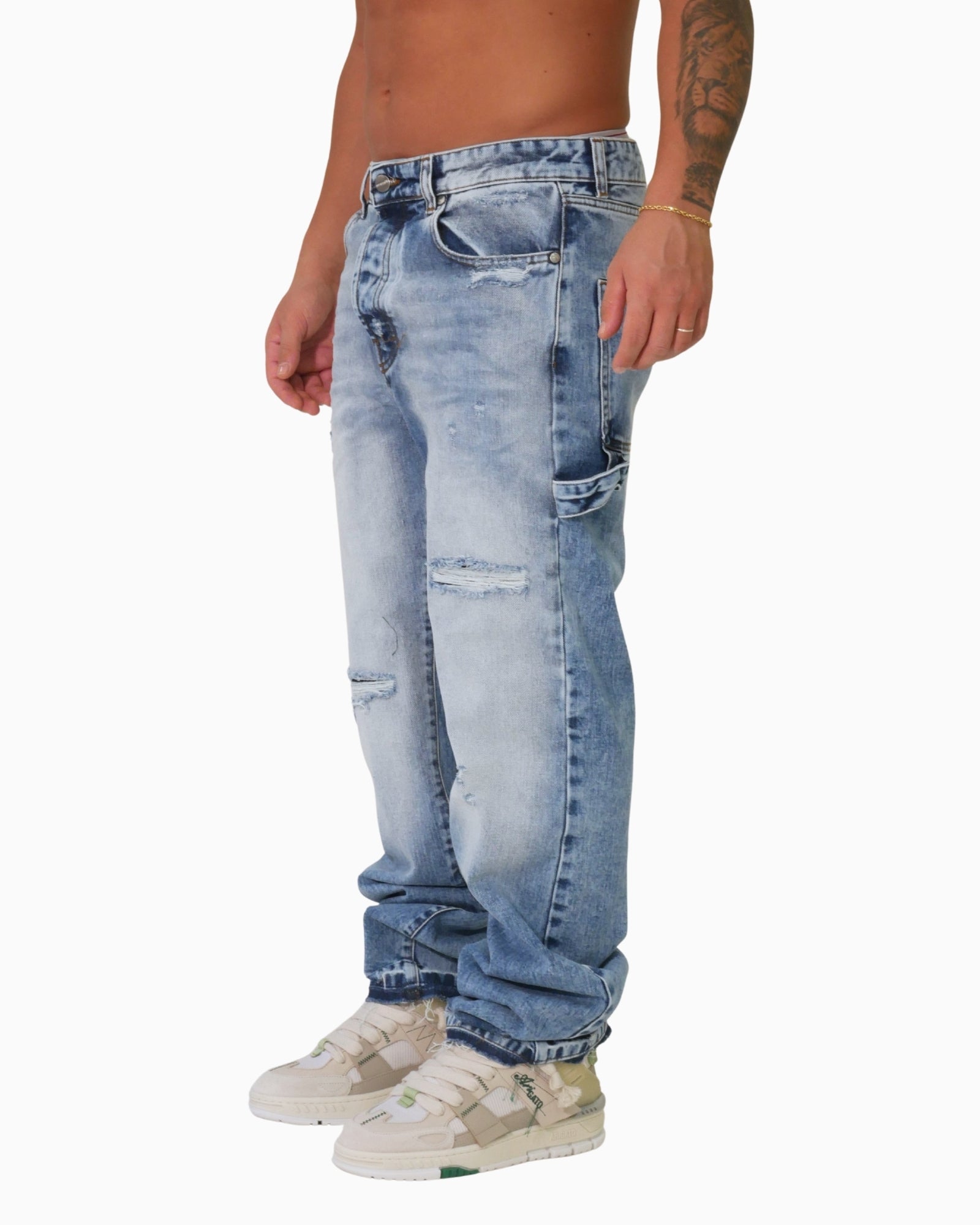 Scopri il jeans baggy Gavensemble della nuova collezione Autunno/Inverno, pensato per chi ama lo stile contemporaneo e rilassato. Realizzato in denim di alta qualità, questo pantalone presenta una vestibilità ampia e un lavaggio chiaro con dettagli destroyed, che donano un look autentico e urbano.
