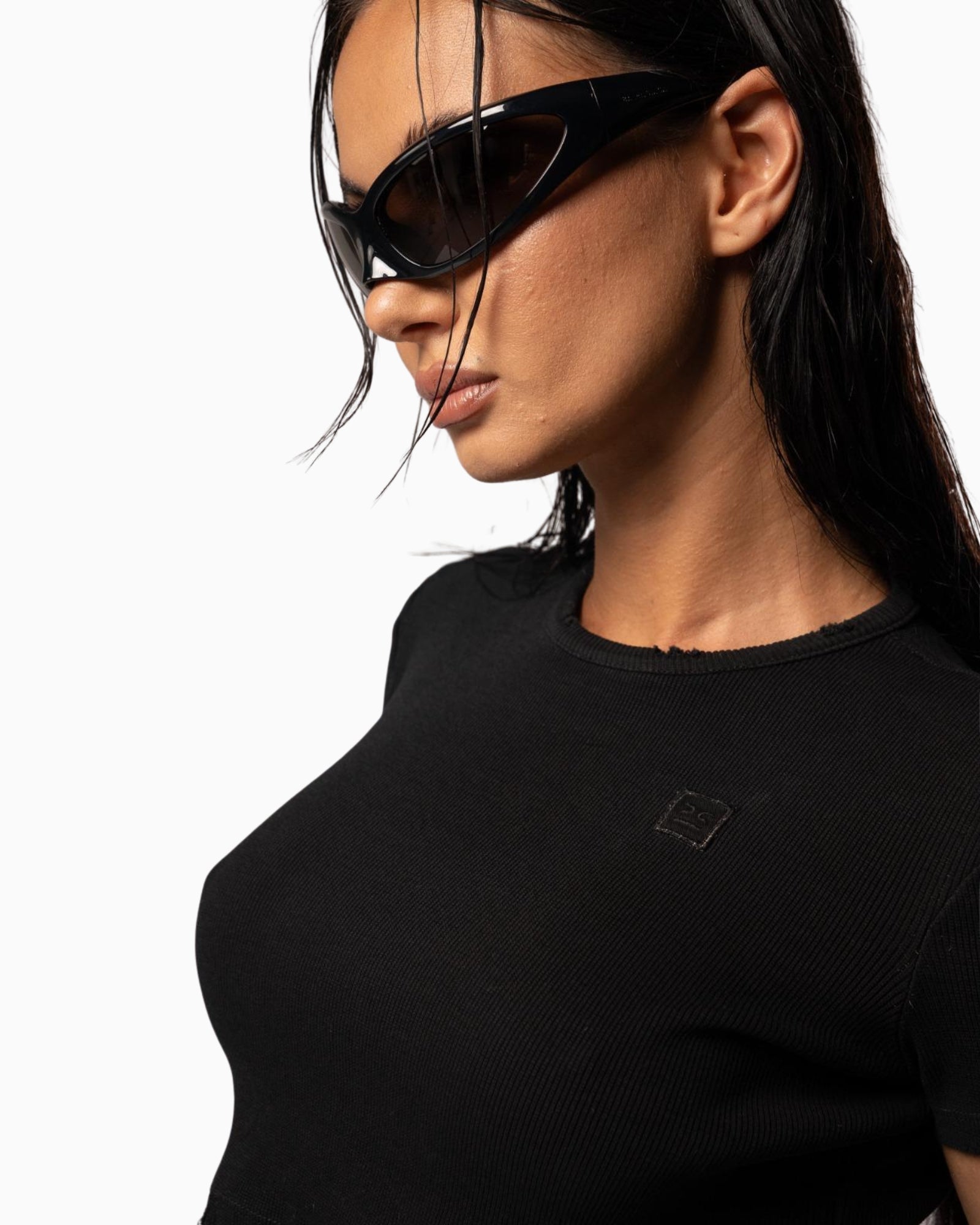 Il design crop con bordi taglio vivo dona un look audace e moderno, mentre il mini-logo ricamato tono su tono aggiunge un dettaglio premium ed elegante. Perfetta da abbinare a jeans, cargo o pantaloni a vita bassa per un outfit femminile e bold.