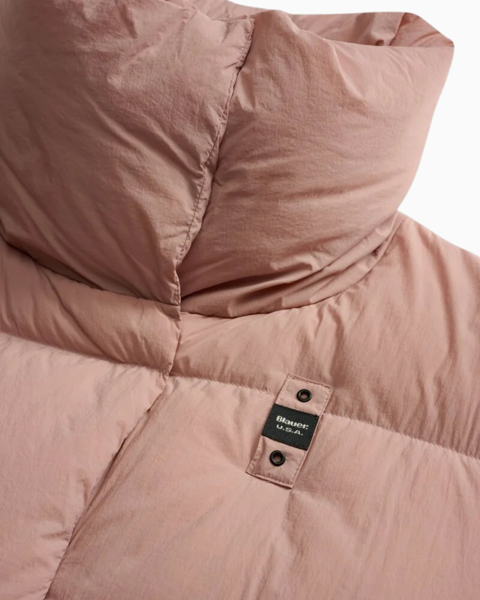 Piumino con trapuntatura a linee orizzontali e collo alto.