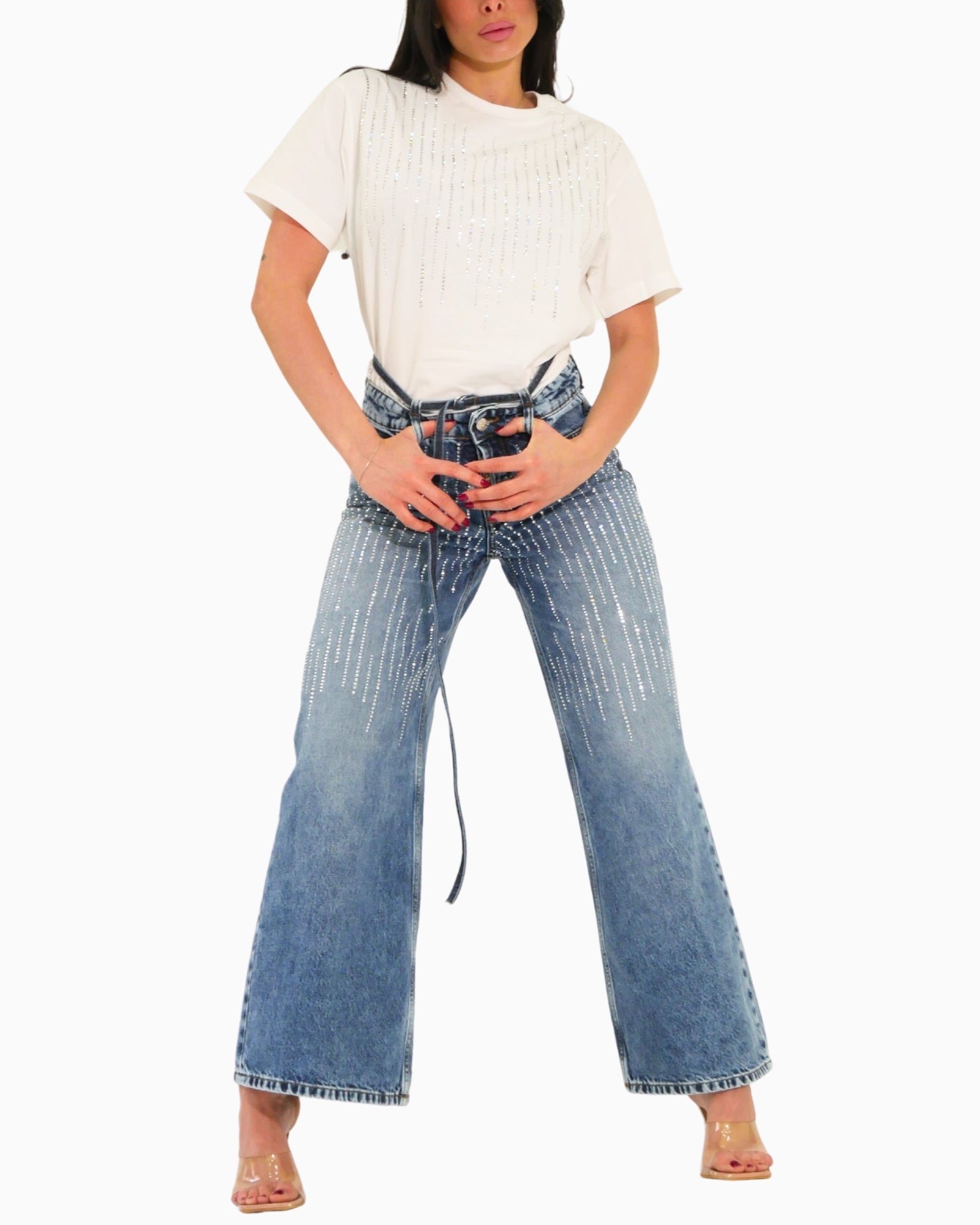 T-shirt Donna in Cotone con Applicazioni di Strass