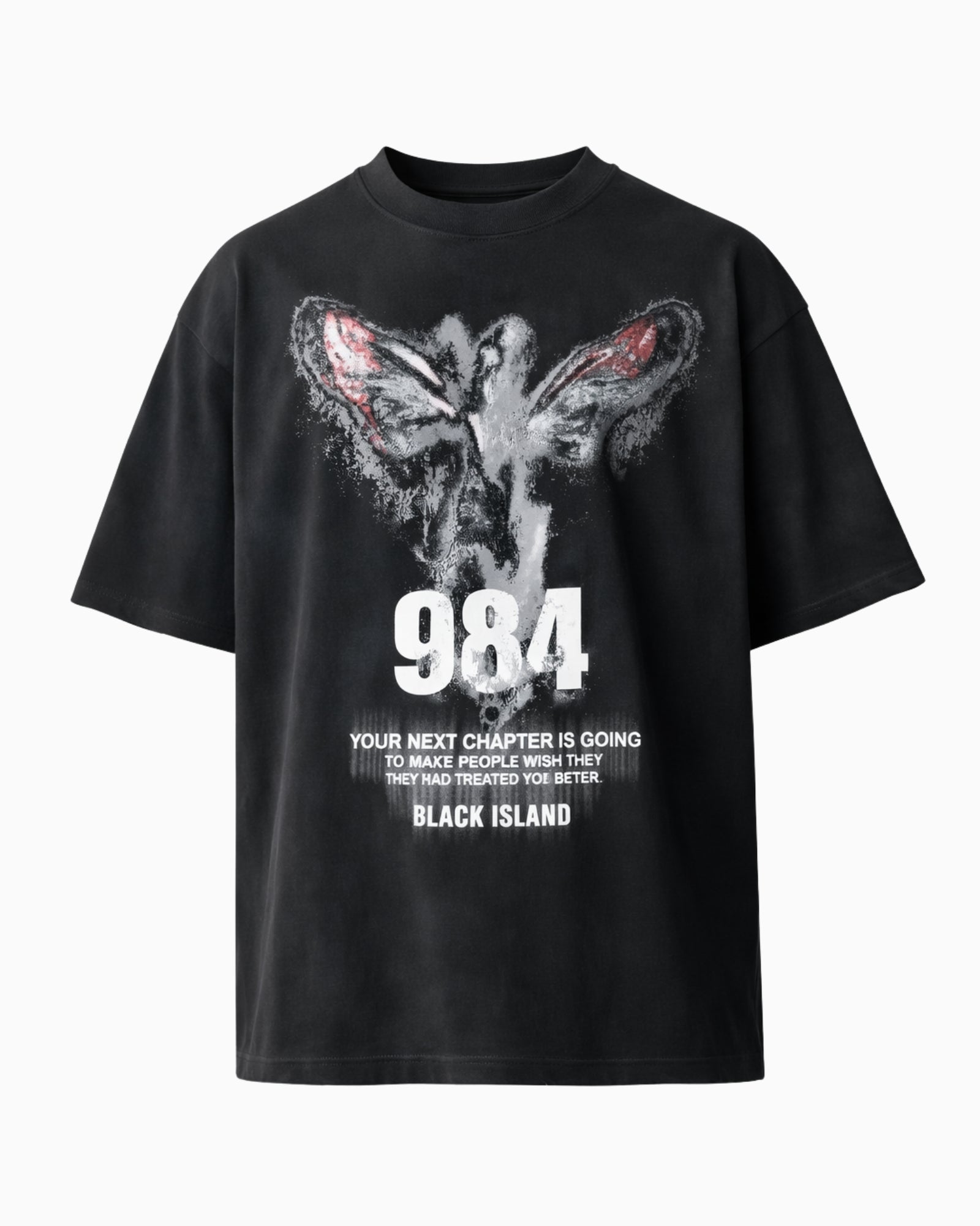 con una tipografia decisa e un'illustrazione espressiva che cattura l'attitudine streetwear grezza di Black Island.