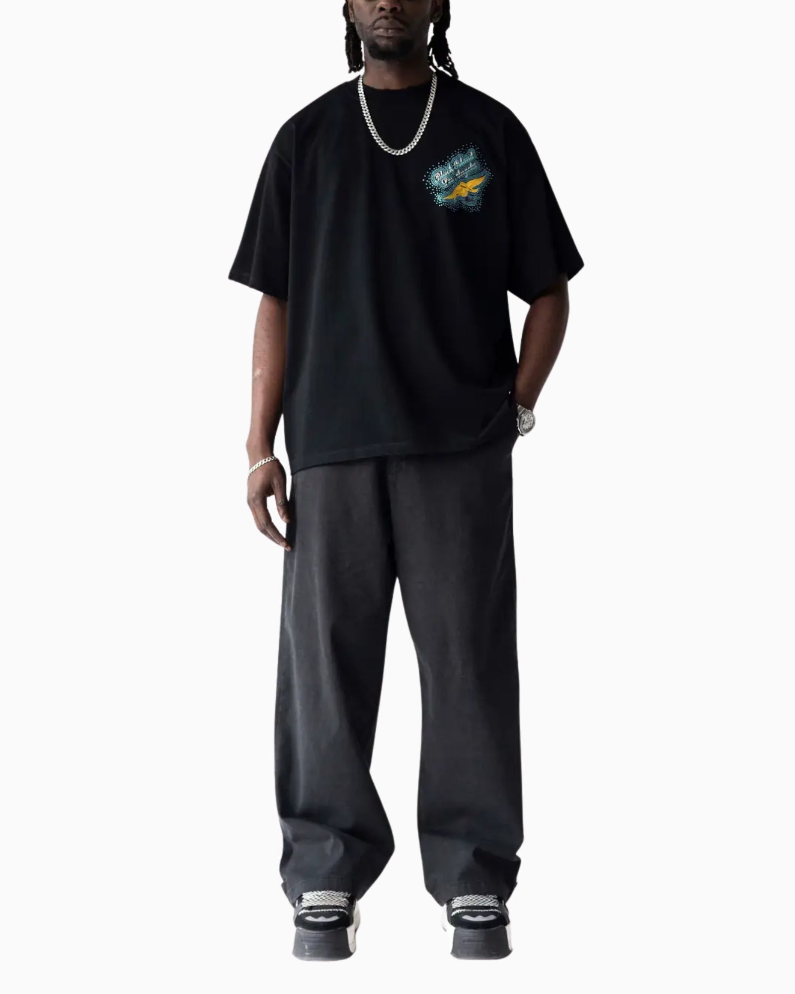 Progettata per riflettere l'identità streetwear urbana di Black Island, combina una forte narrazione visiva con una silhouette rilassata,