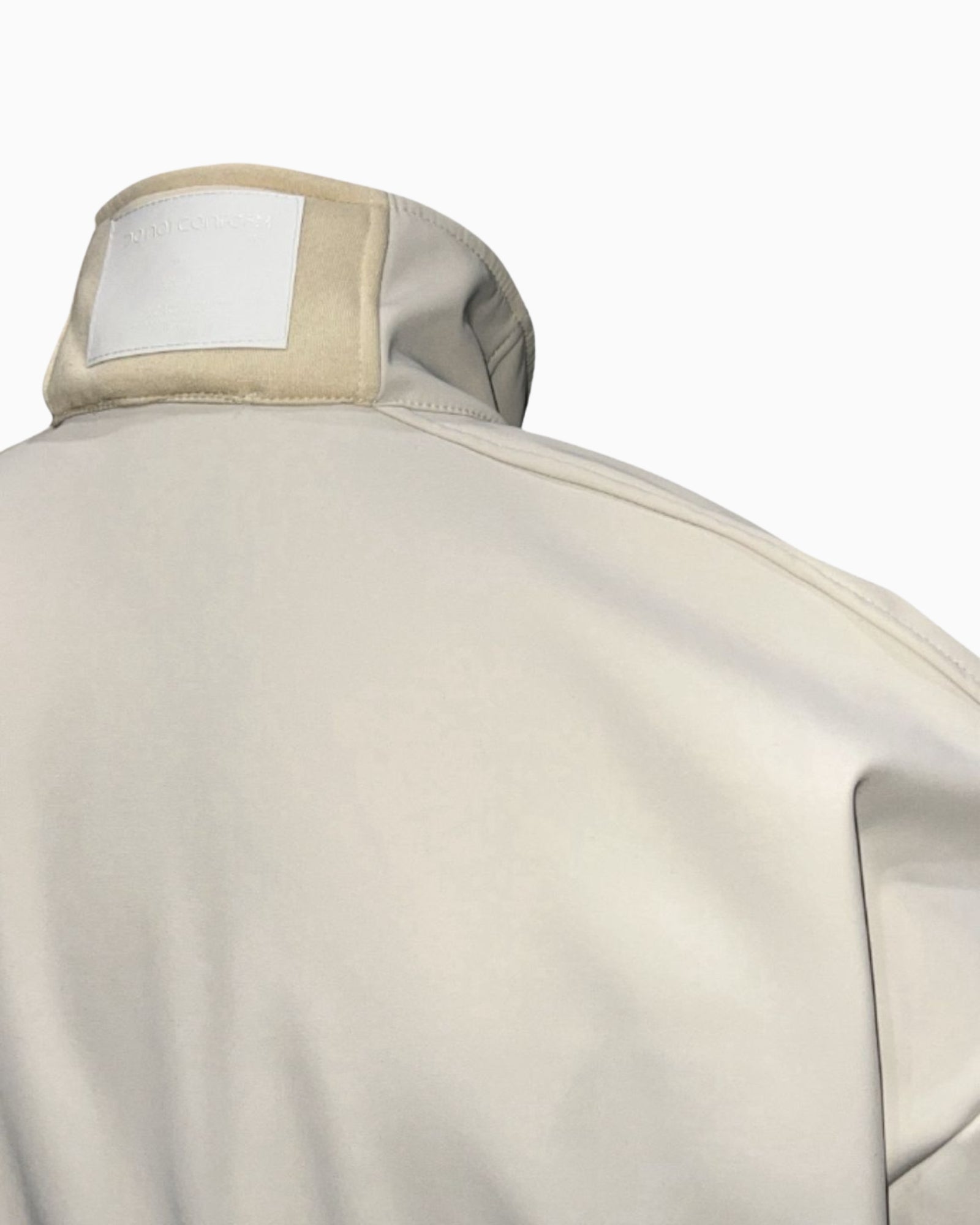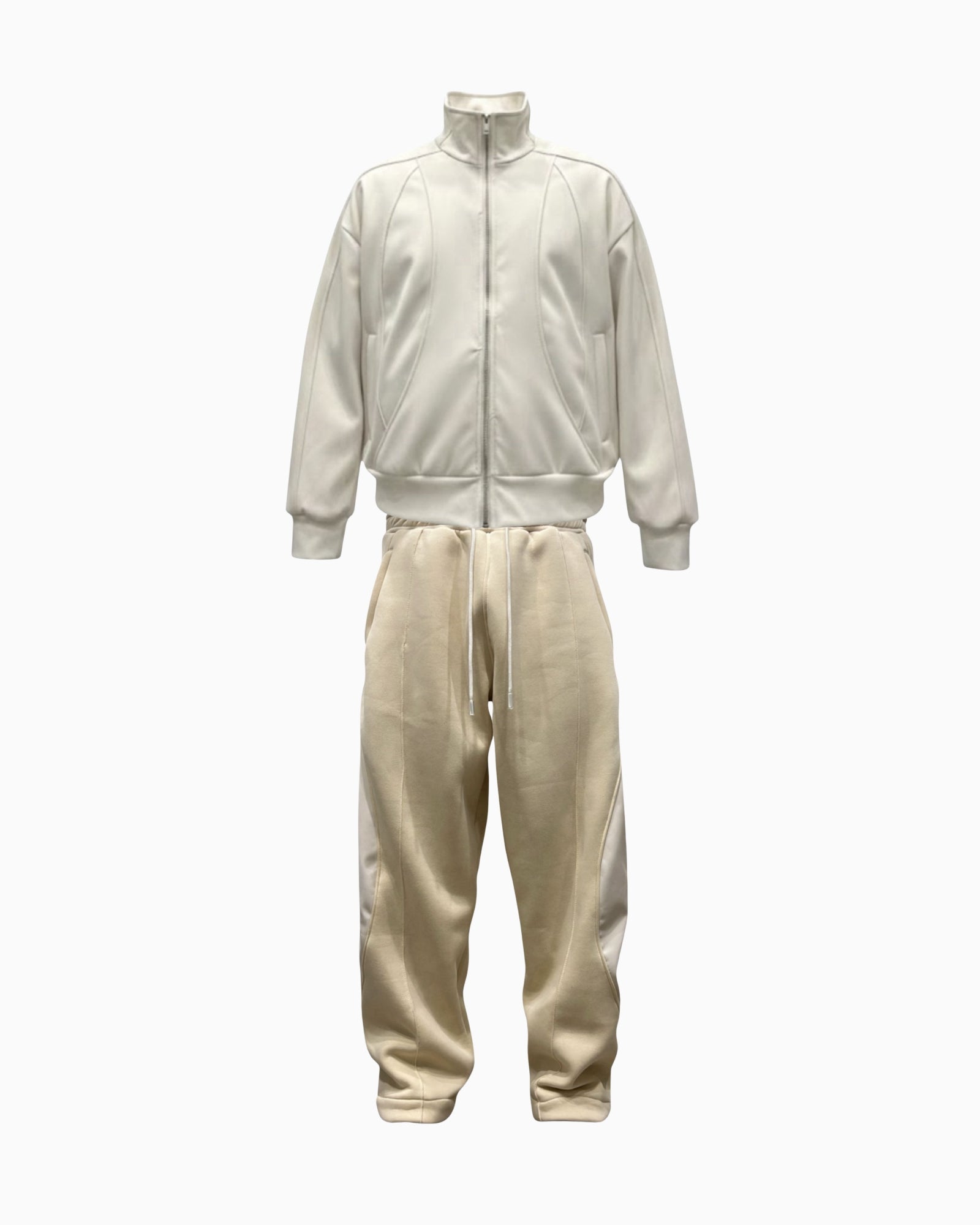 Tuta premium composta da jacket over in tessuto tecnico con interno pile e pantalone in cotone con inserto tecnico.