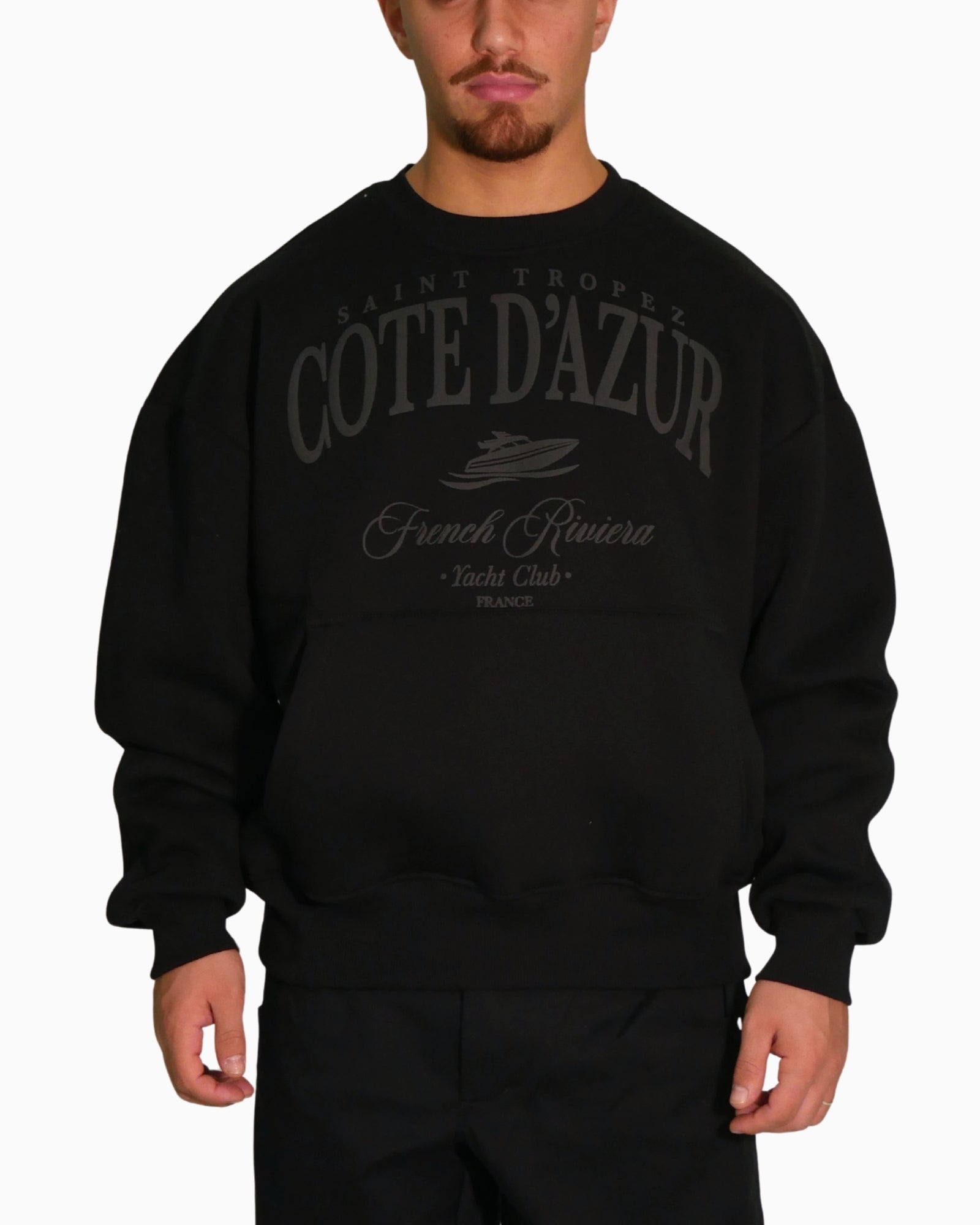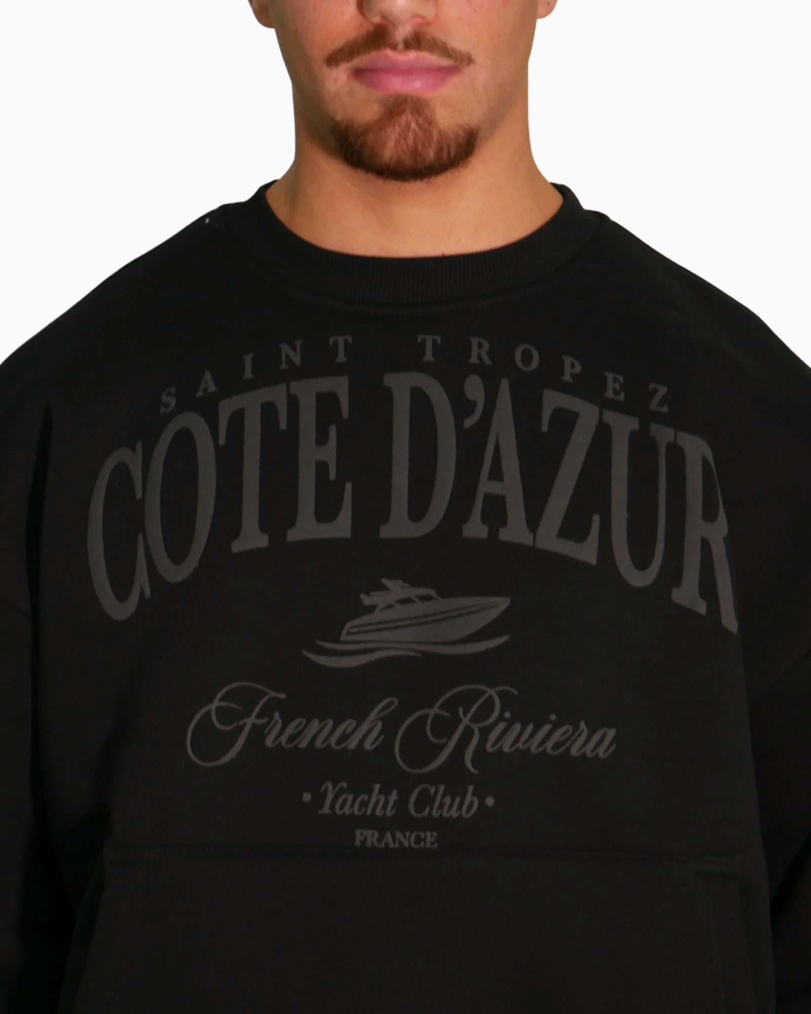 Sul davanti presenta la grafica in rilievo “Côte d’Azur – French Riviera Yacht Club”, che richiama un’estetica sportiva ed elegante allo stesso tempo.