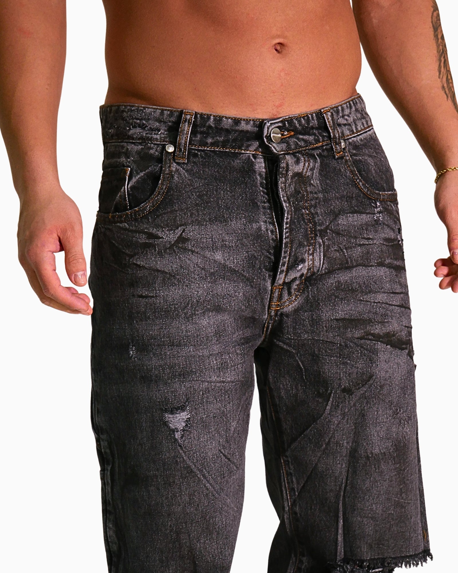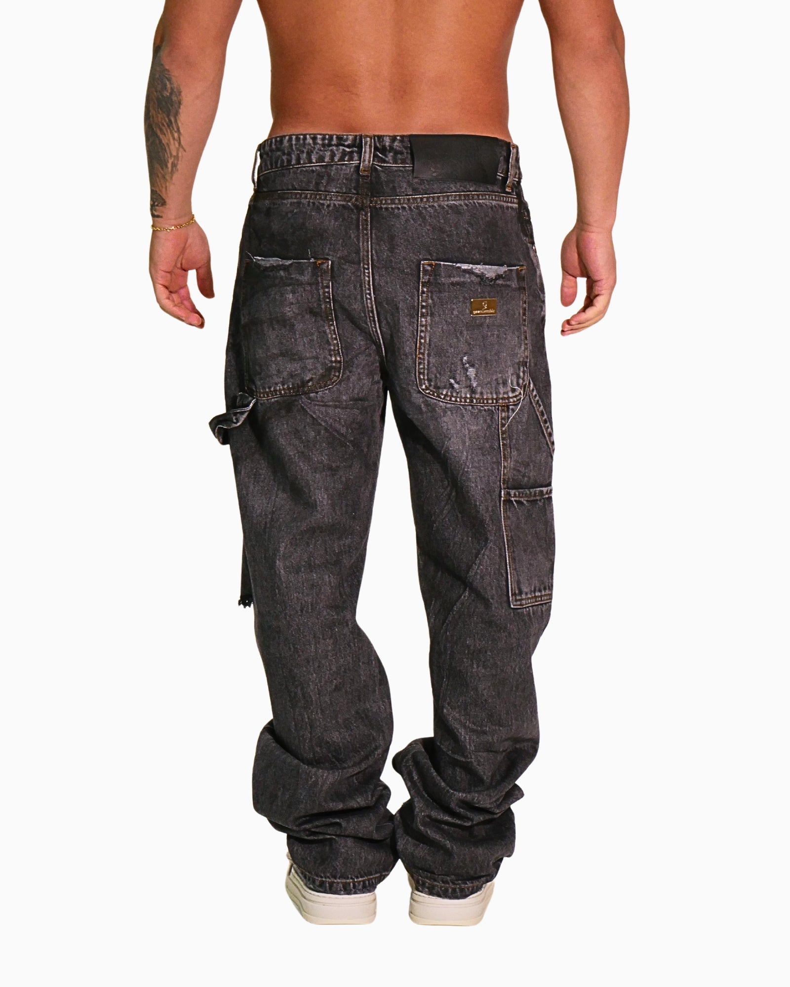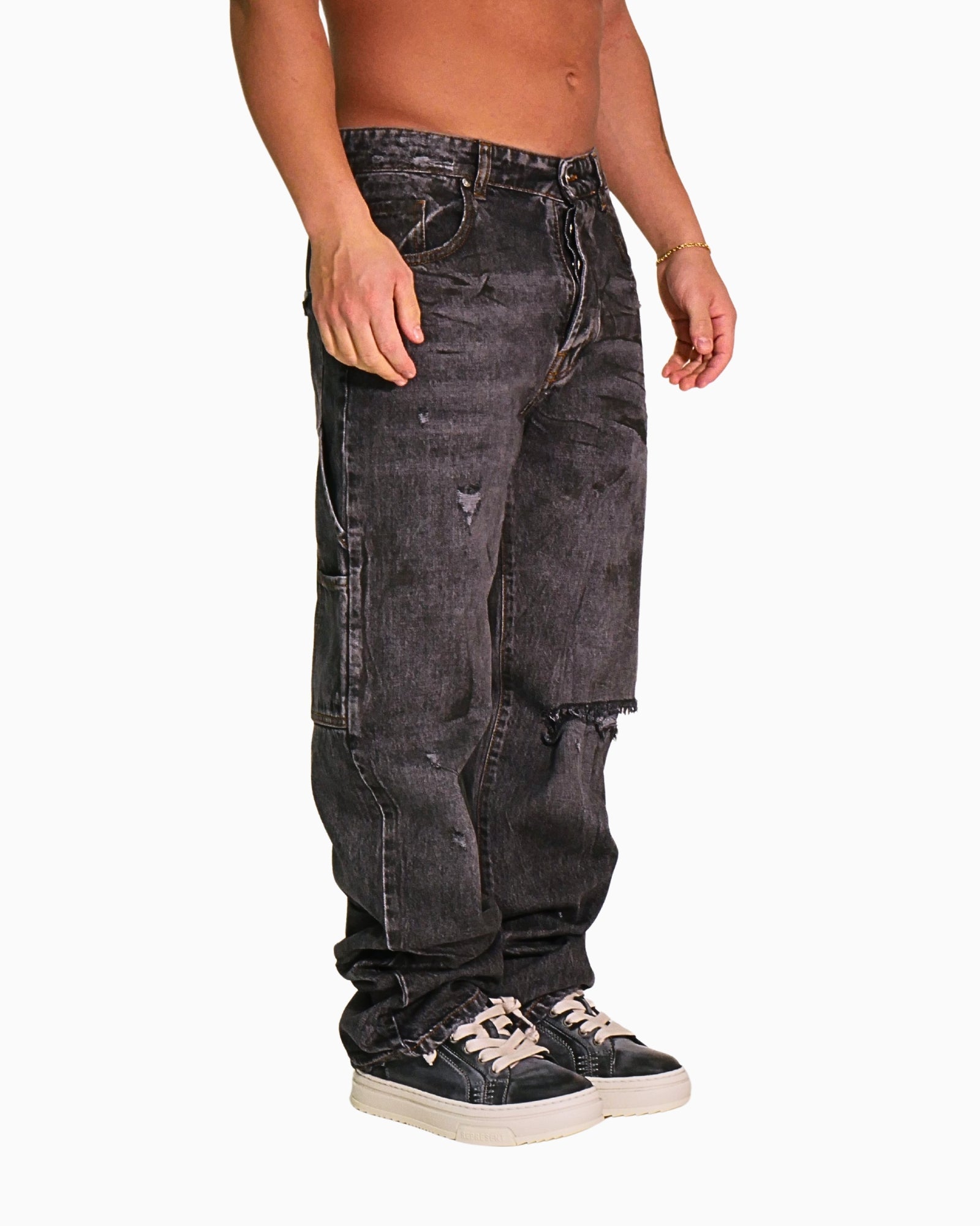 I Baggy40 firmati Gavensemble incarnano l’essenza autentica dello streetwear contemporaneo. Realizzati in denim nero slavato, questi jeans presentano un lavaggio effetto used con leggere abrasioni artigianali e sfumature grigie, che donano profondità e carattere al tessuto.