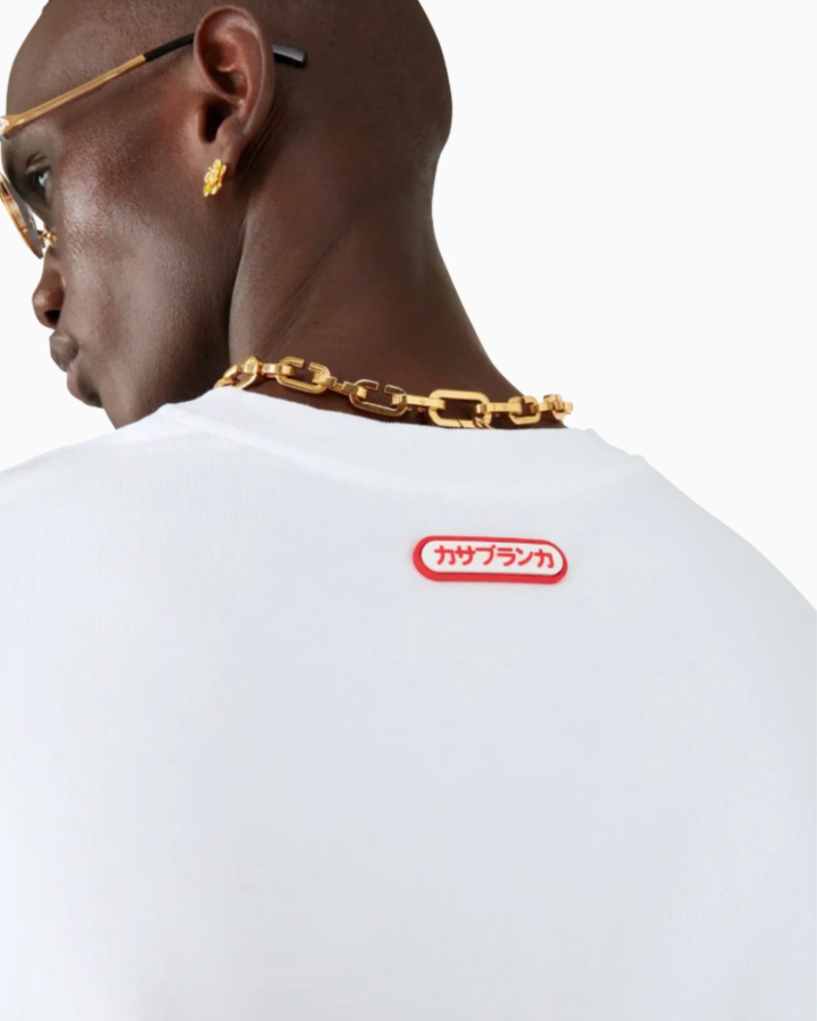 Completata da un logo giapponese Casablanca applicato sul retro e da un classico girocollo.