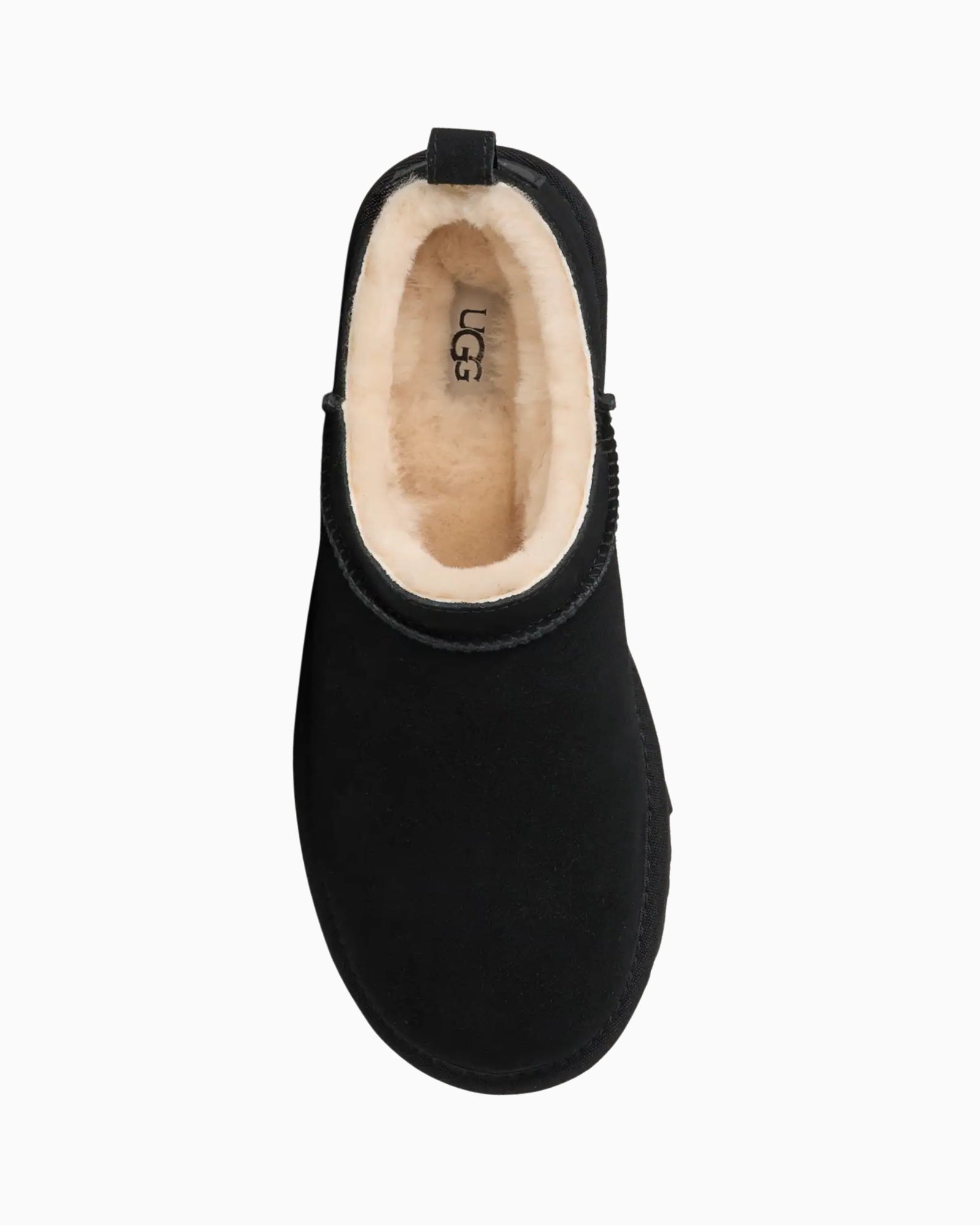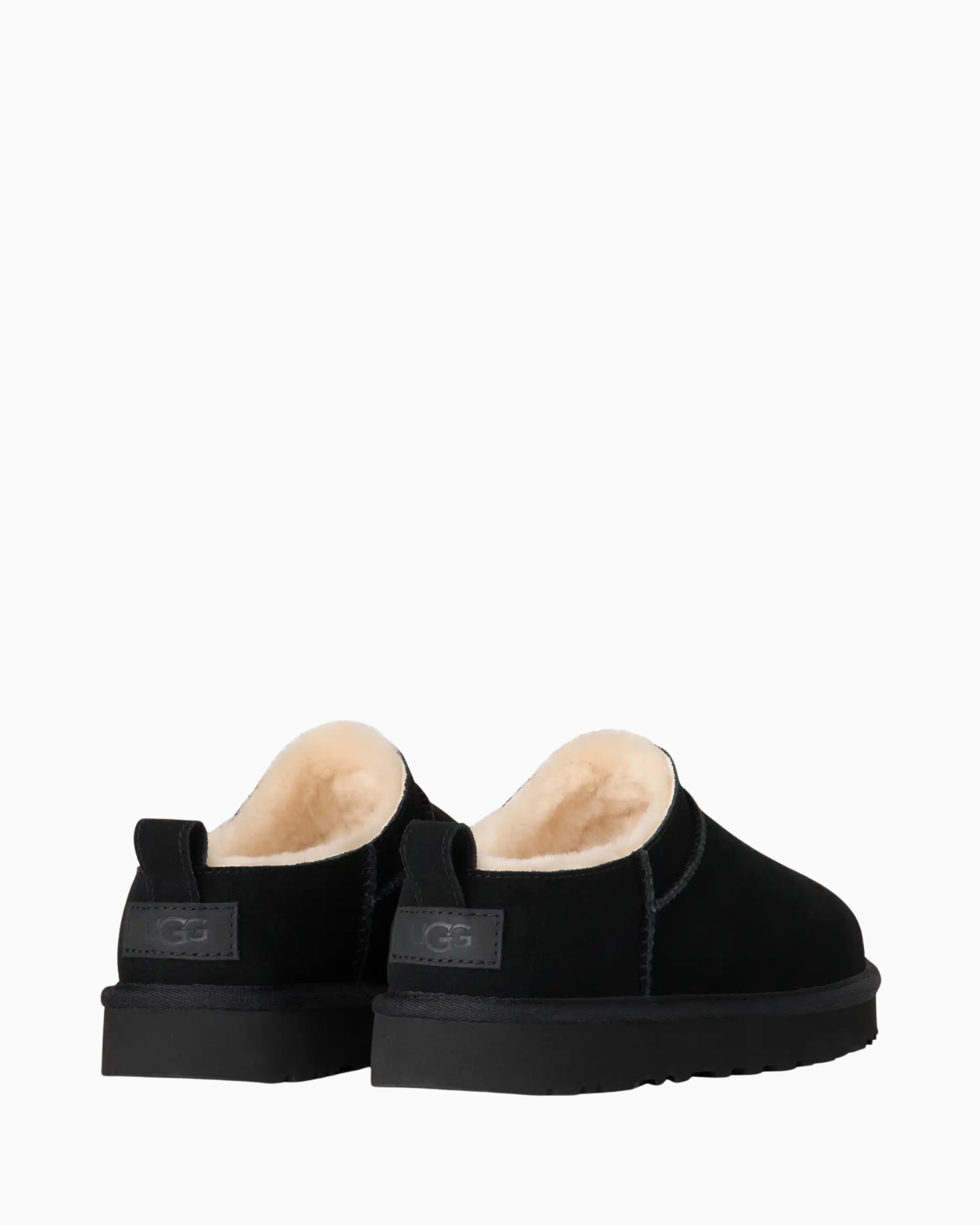Etichetta in tessuto con logo UGG® sulla soletta, etichetta in pelle con logo UGG® in rilievo sul tallone